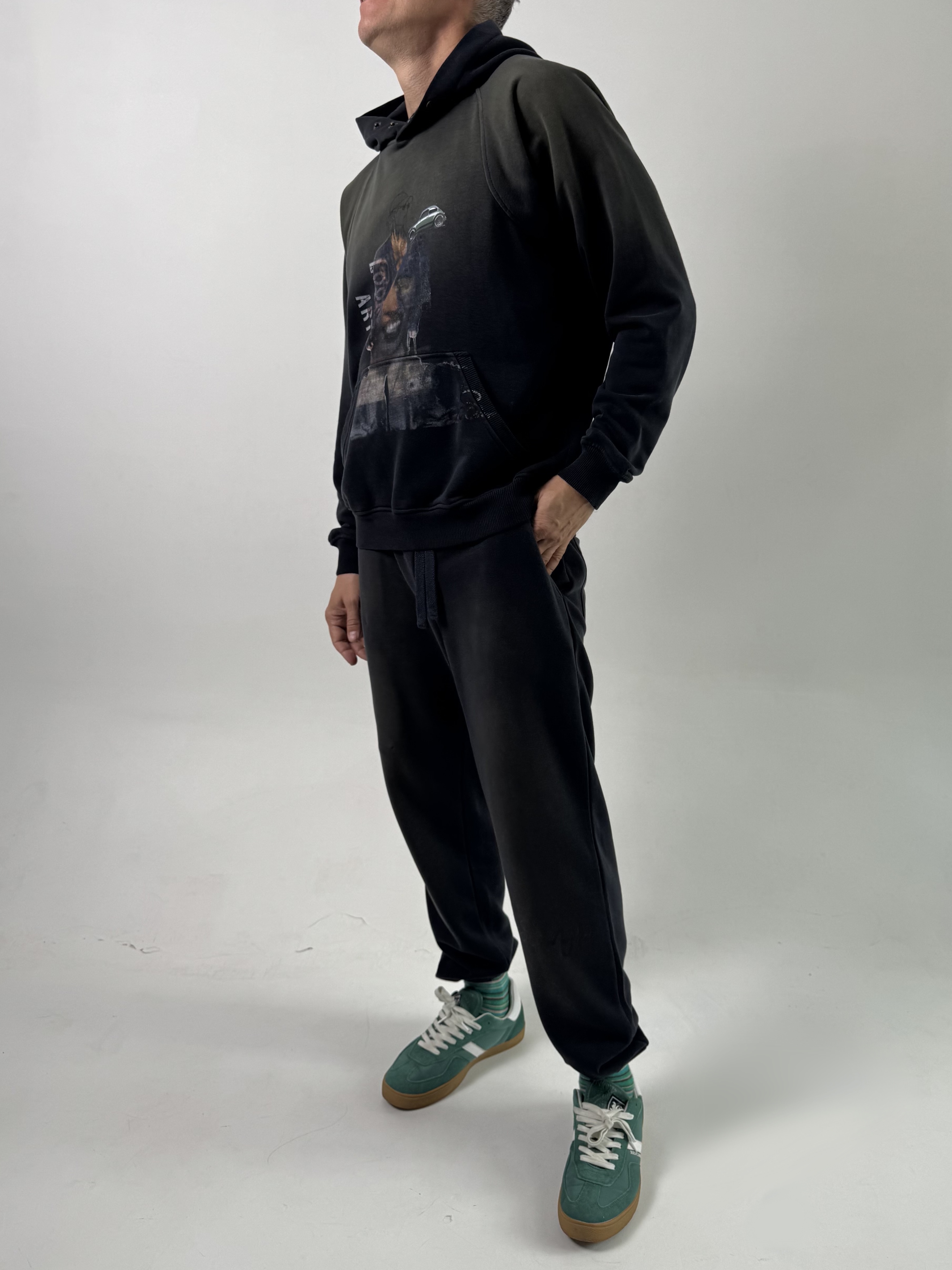 Градиентные джоггеры с 4 карманами и принтом на заднем кармане.